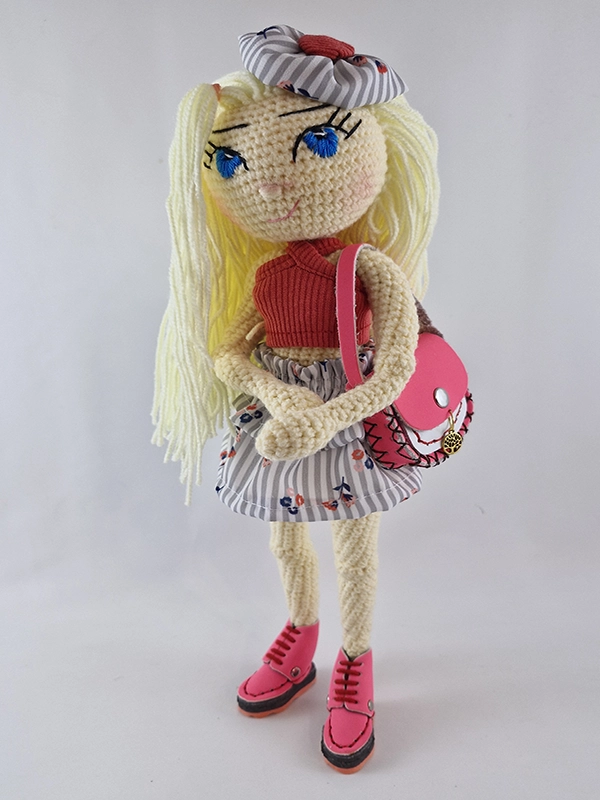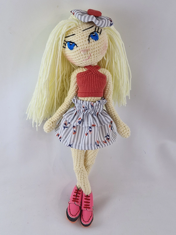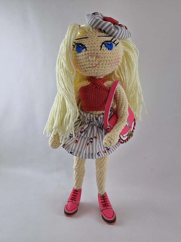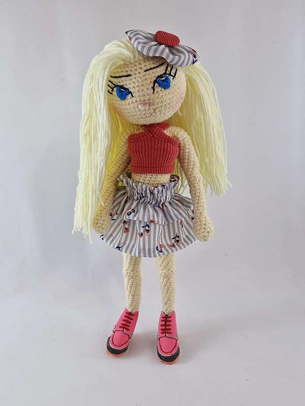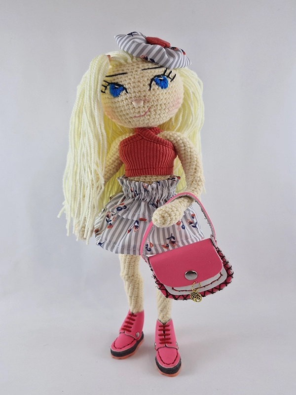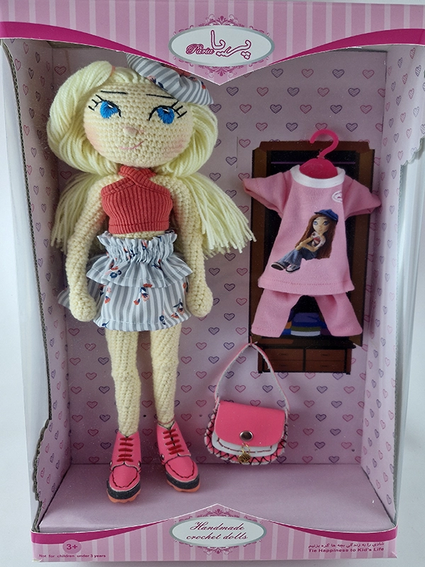 پک این عروسک شامل : عروسک سارا،کراپ ضربدری گلبهی ، دامن دو دامنه چین دار ،