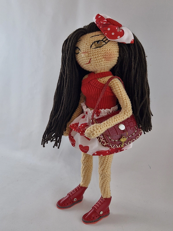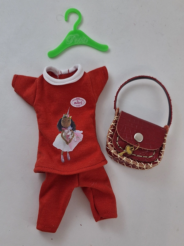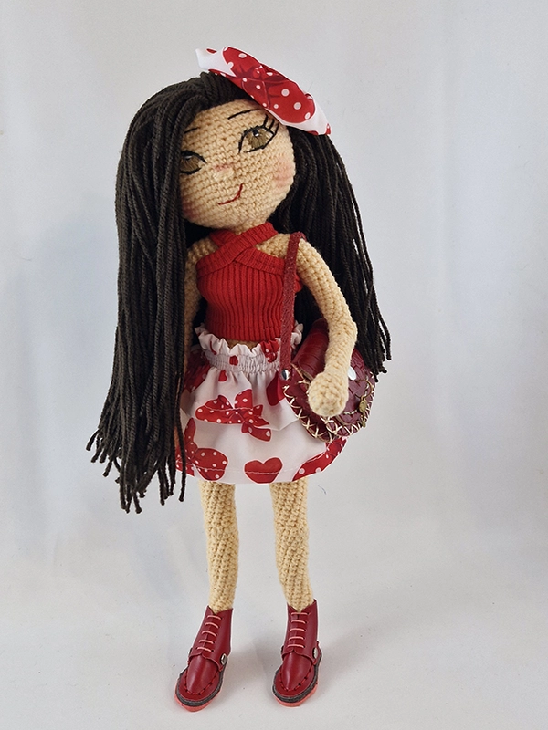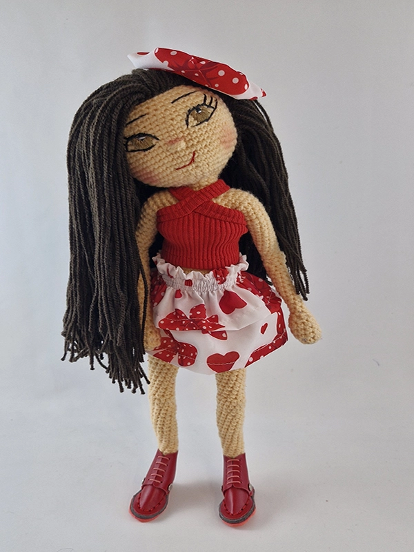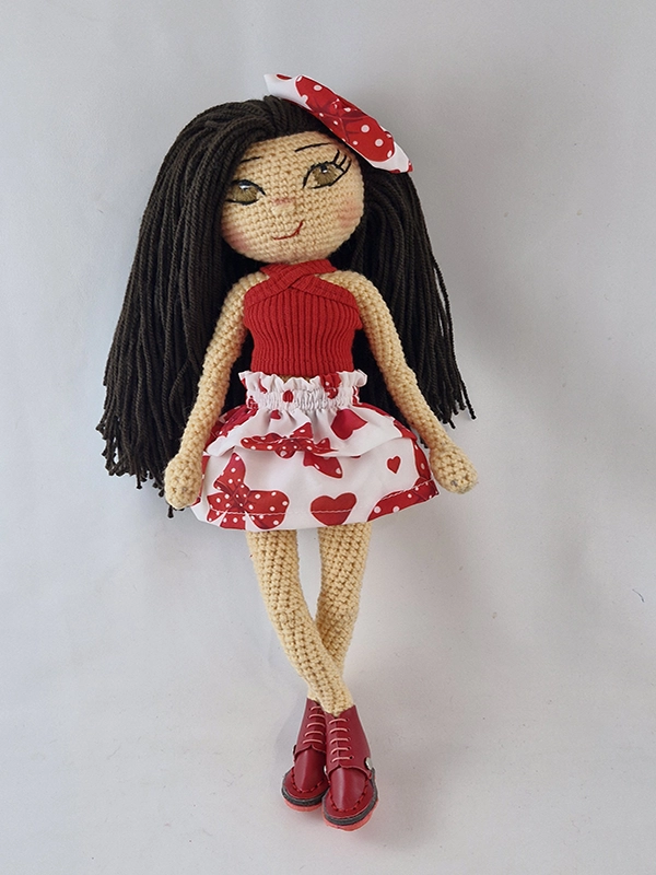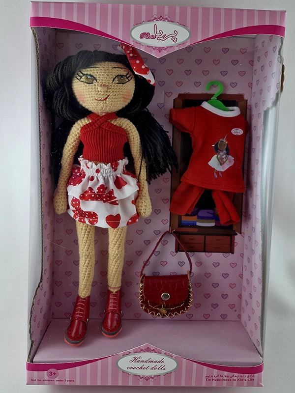 پک این عروسک شامل : عروسک پریا،کراپ ضربدری قرمز، دامن دو دامنه چین دار ،