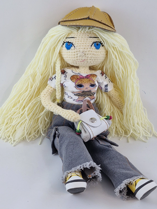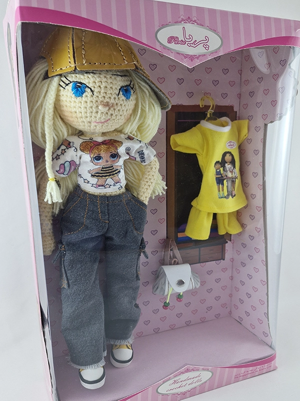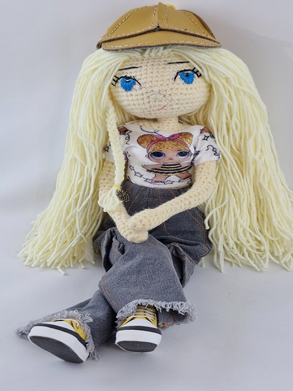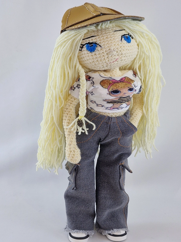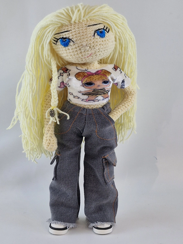 پک عروسک با شلوار کارگو شامل عروسک تیشرت کراپ عکس دار مخمل ،