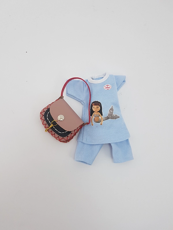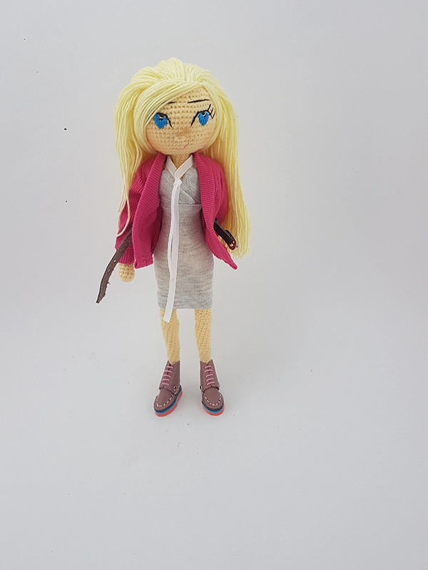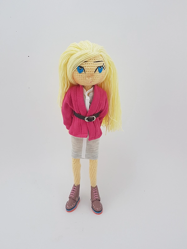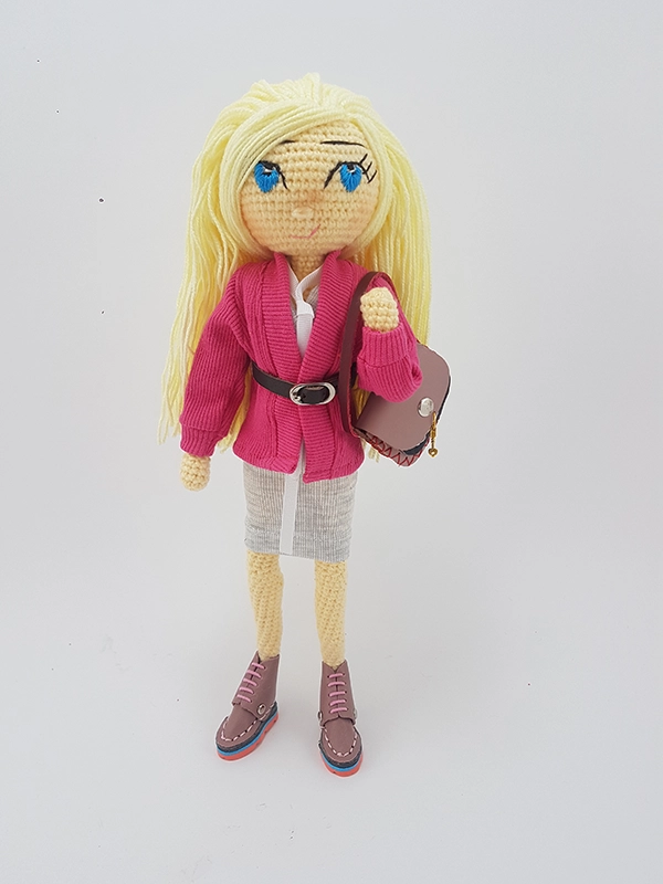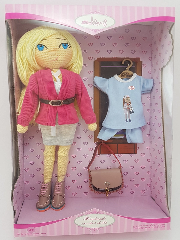 پک عروسک با ژاکت شامل عروسک،ژاکت صورتی، پیراهن با بند دور گردنی