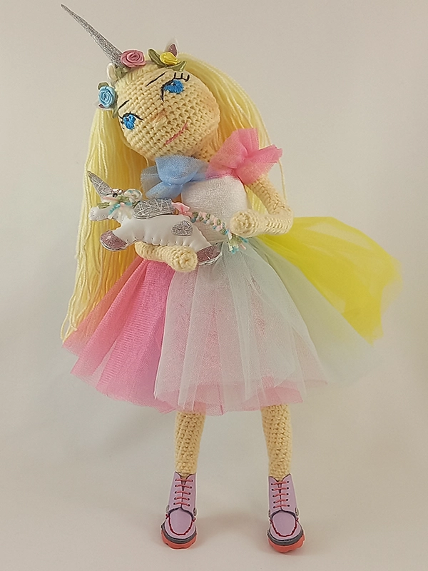 پک عروسک دریا مدل یونیکورن شامل: عروسک، لباس یونیکورن، تل تک شاخ،لباس زیر عروسک،