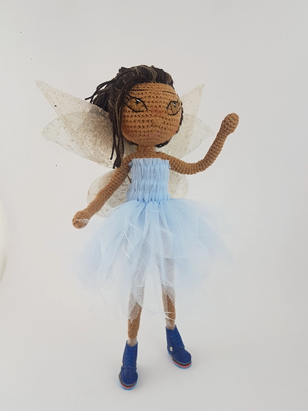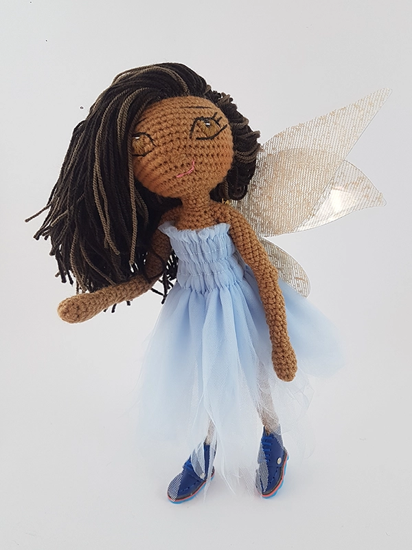 پک عروسک کیمیا مدل فرشته شامل : لباس تور آبی و بال که بوسیله گیره به پیراهن