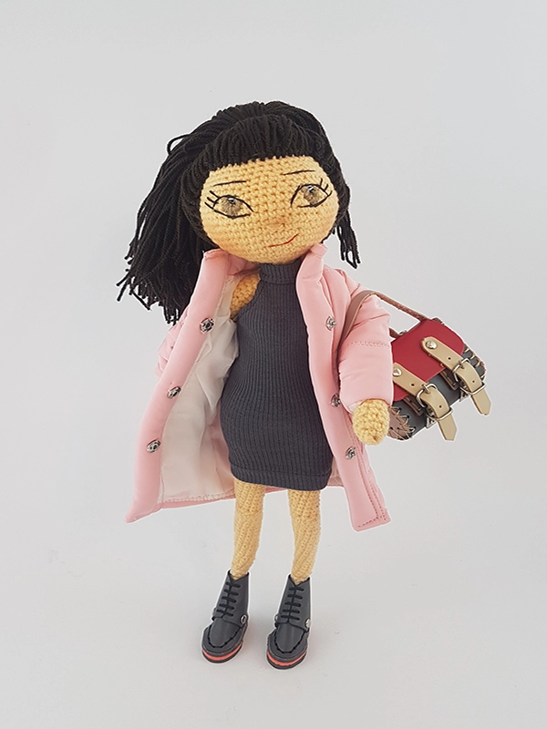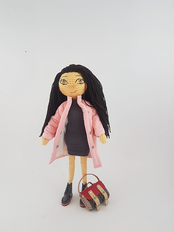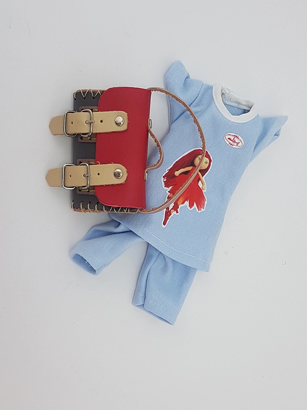 کاپشن بلند جیب دار ،کیف ،کفش و تیشرت و شلوارک عروسک