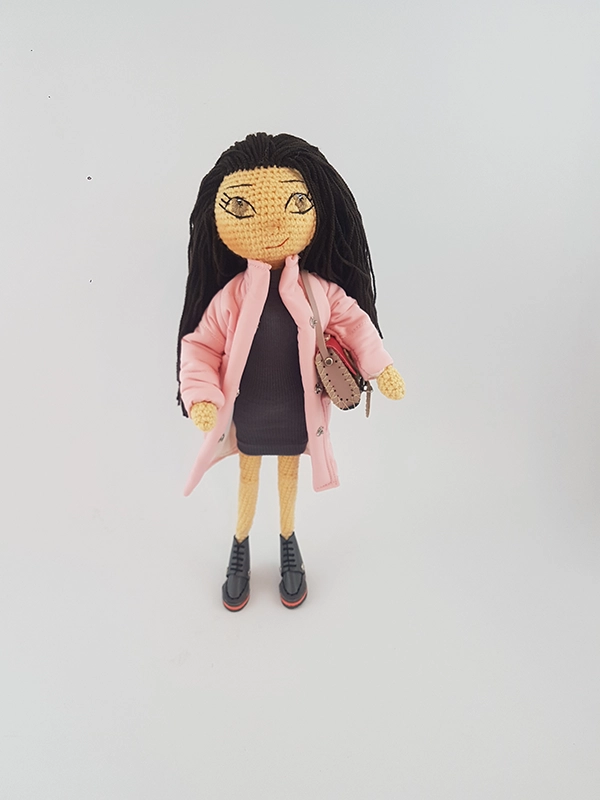 پک عروسک با کاپشن شامل :عروسک ،پیراهن دور گردنی ،