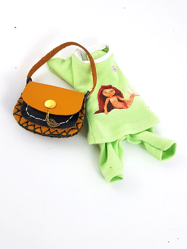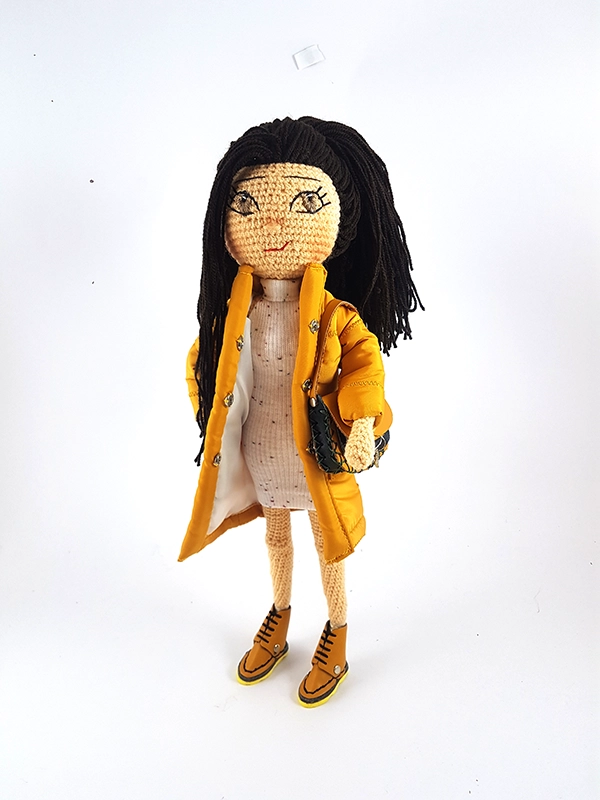 کاپشن بلند جیب دار ،کیف ،کفش و تیشرت و شلوارک عروسک