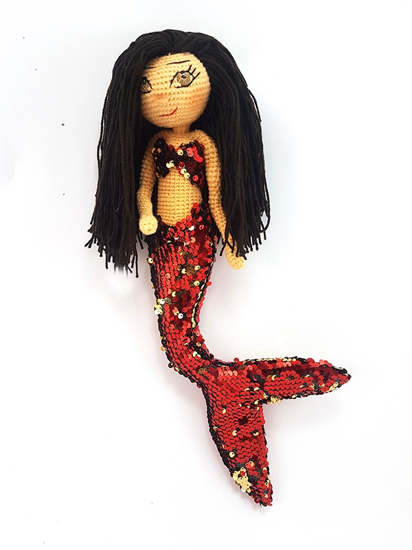 پک عروسک پری دریایی شامل :عروسک ،باله و نیم تنه پولکی پری دریایی،