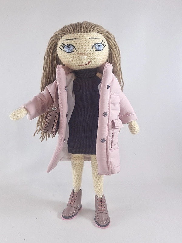 کاپشن بلند جیب دار ،کیف ،کفش و تیشرت و شلوارک عروسک