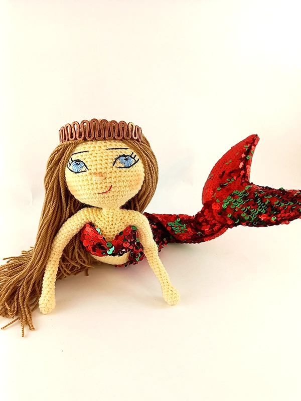 پک عروسک پری دریایی شامل :عروسک ،باله و نیم تنه پولکی پری دریایی،