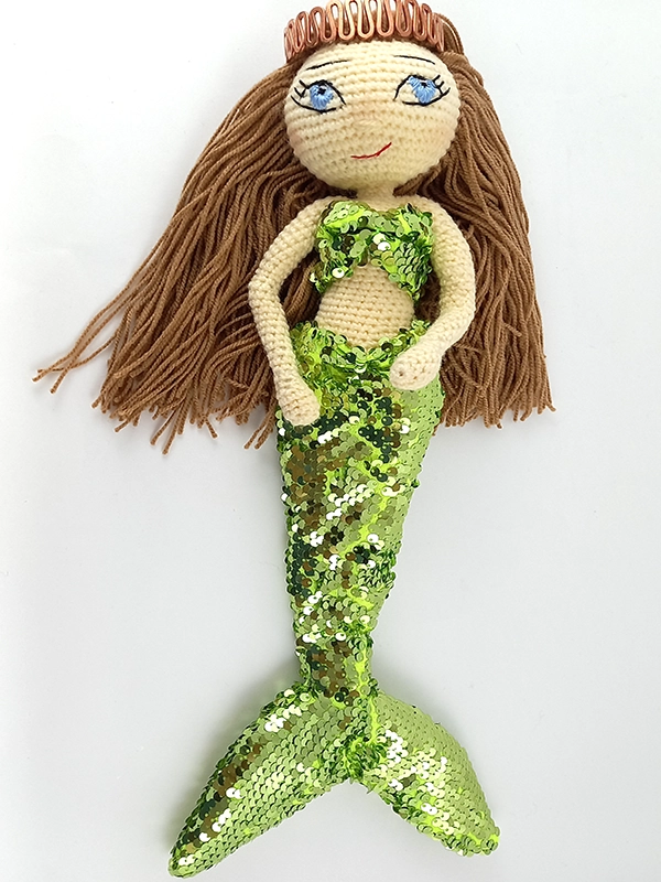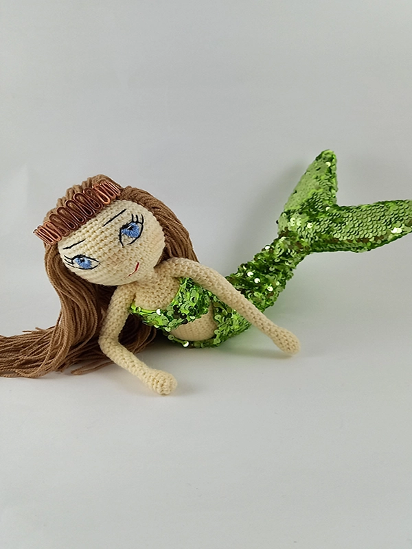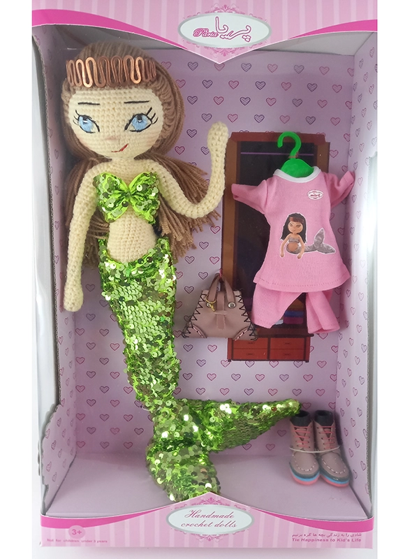 پک عروسک پری دریایی شامل :عروسک ،باله و نیم تنه پولکی پری دریایی،