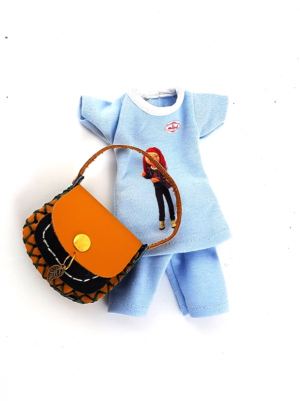 کاپشن بلند جیب دار ،کیف ،کفش و تیشرت و شلوارک عروسک