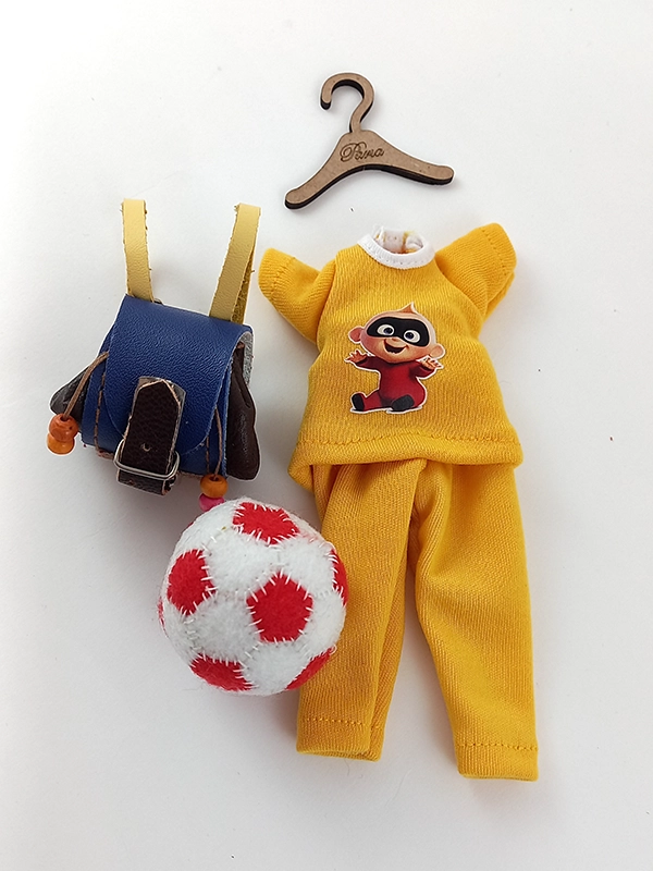 پک عروسک شامل :عروسک ،تیشرت و شلوارک اورال جین،جوراب ،کفش ،کیف کوله پشتی