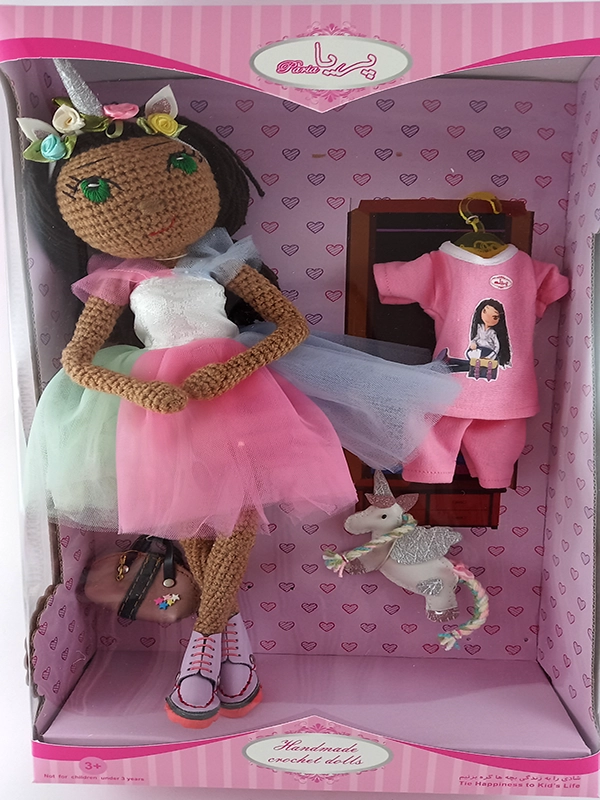 پک عروسک یاسمن مدل یونیکورن شامل: عروسک، لباس یونیکورن، تل تک شاخ،لباس زیر عروسک،